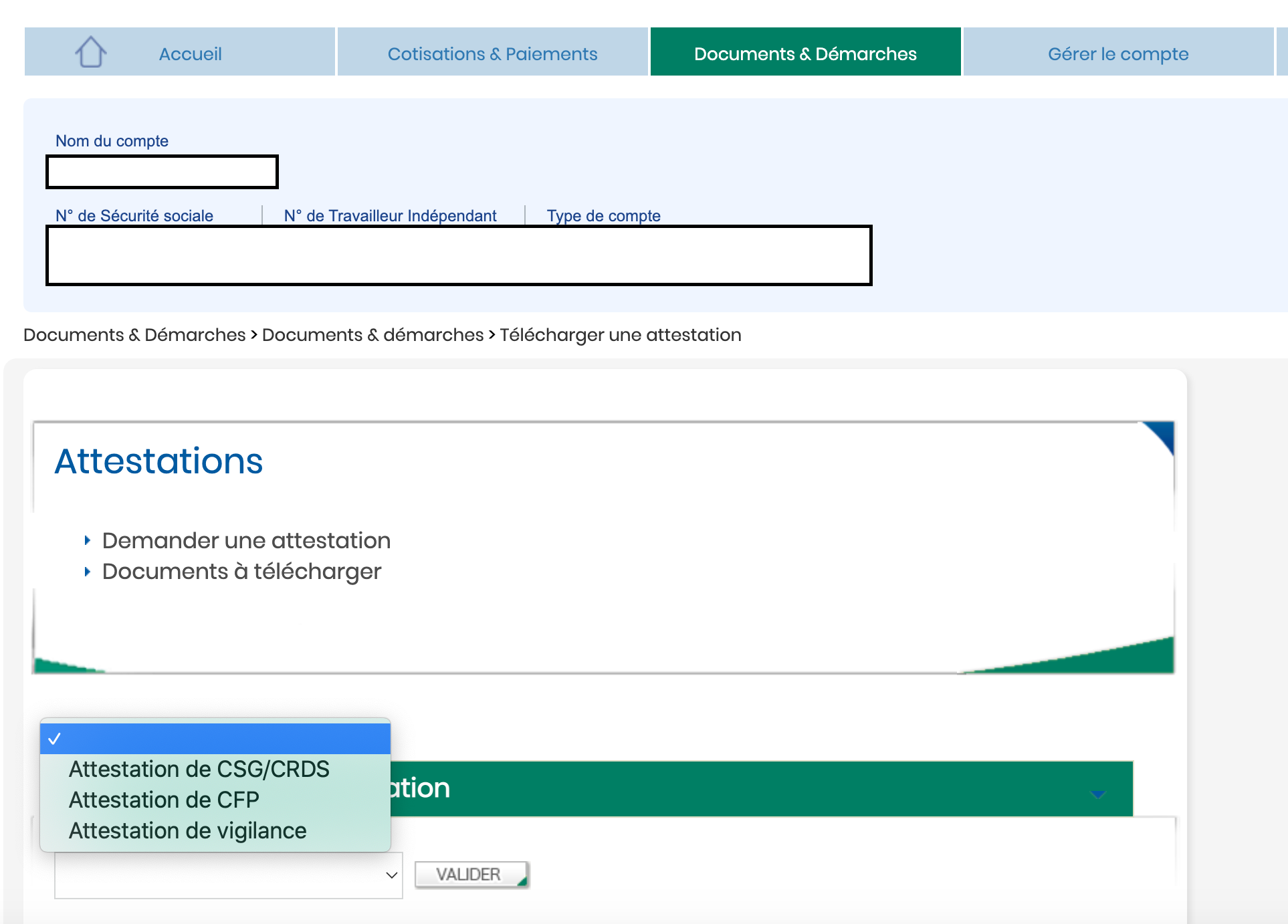 Documents & Démarches > Télécharger une attestation > Demander une attestation > Attestation de CFP